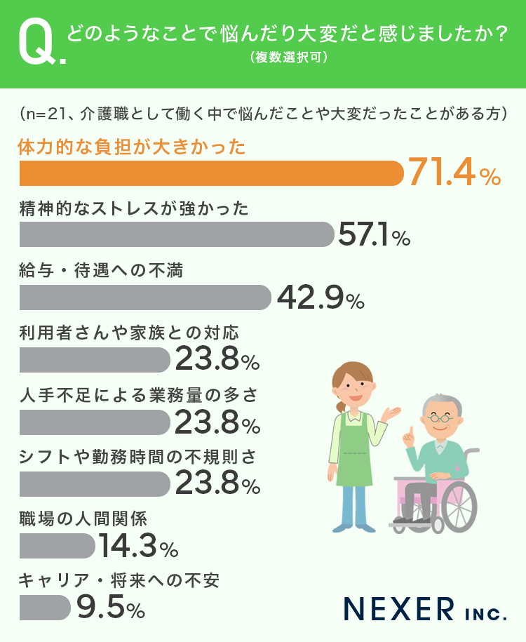 株式会社NEXER・介護職で悩んだこと・大変だったことに関する調査