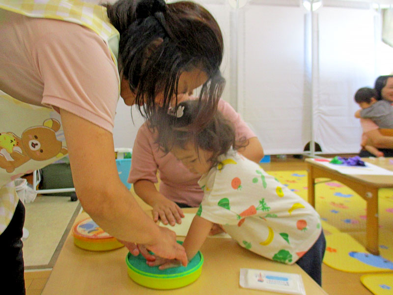 お家では気軽にできない手型のスタンプは、記念になったと好評でした。