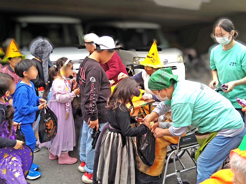 三世代交流の機会でもあり、ご利用者もちょっと仮装して、お菓子を渡したり、お話をしたりして、子どもたちからも元気をもらいました。