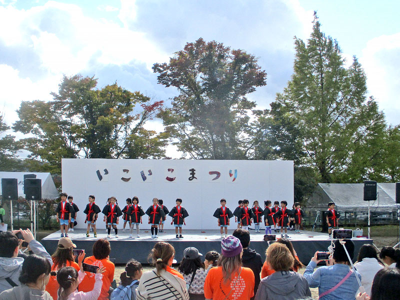 11月1日(土)地域にある社会福祉法人いこま福祉会かざぐるま主催のお祭り『いこいこまつり』に参加しました。 ゆめ組(5歳児)は、運動会で踊った鳴子ダンス『ソイヤ』を披露しました。 地域の方々からたくさんの拍手をもらって、とても満足気な様子の子ども達でした。 その後は、お祭りの模擬店も楽しんだ子ども達です。