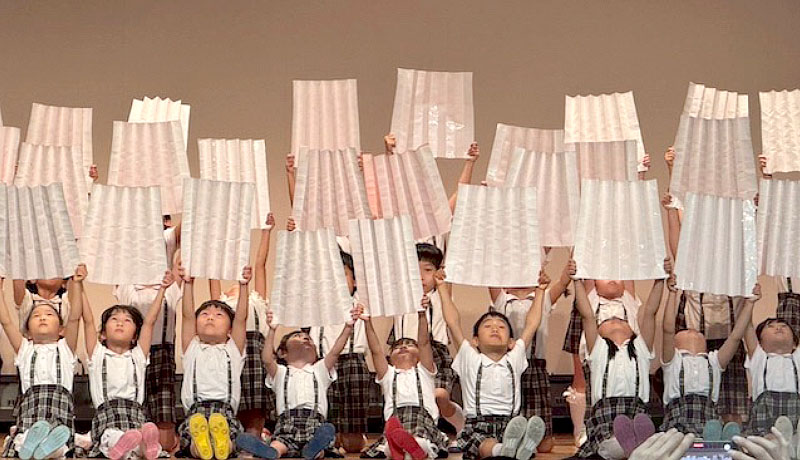 合唱曲1曲目は70年近く(1955年~)歌い継がれている童謡「小さい秋みつけた」、2曲目「あの青い空のように」は手話を披露しました。
