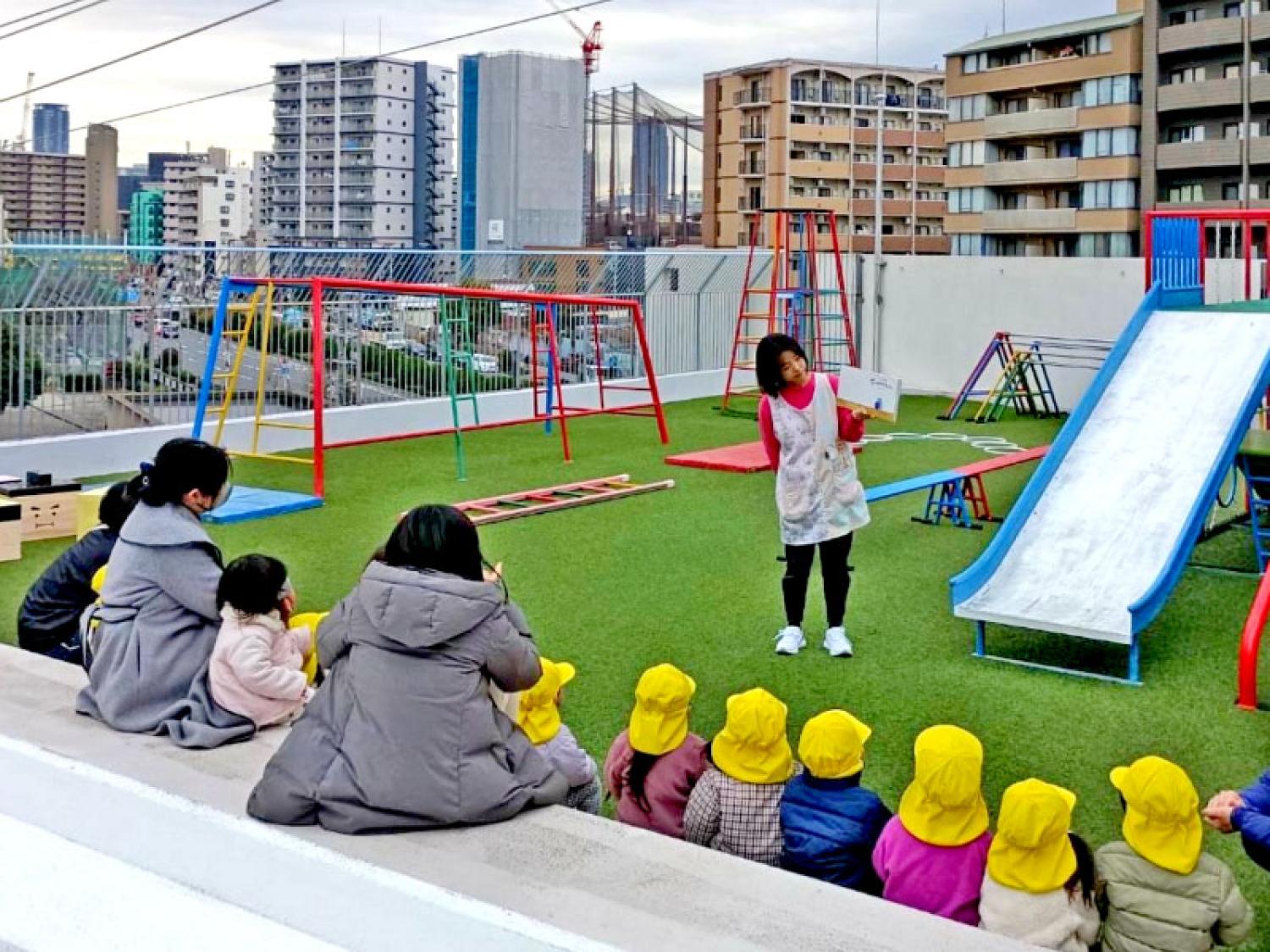 ・実施日時:令和8年1月13日(火)10:00~11:00 ・報告施設:認定こども園 東野田ちどり保育園 ・開催場所:屋上園庭