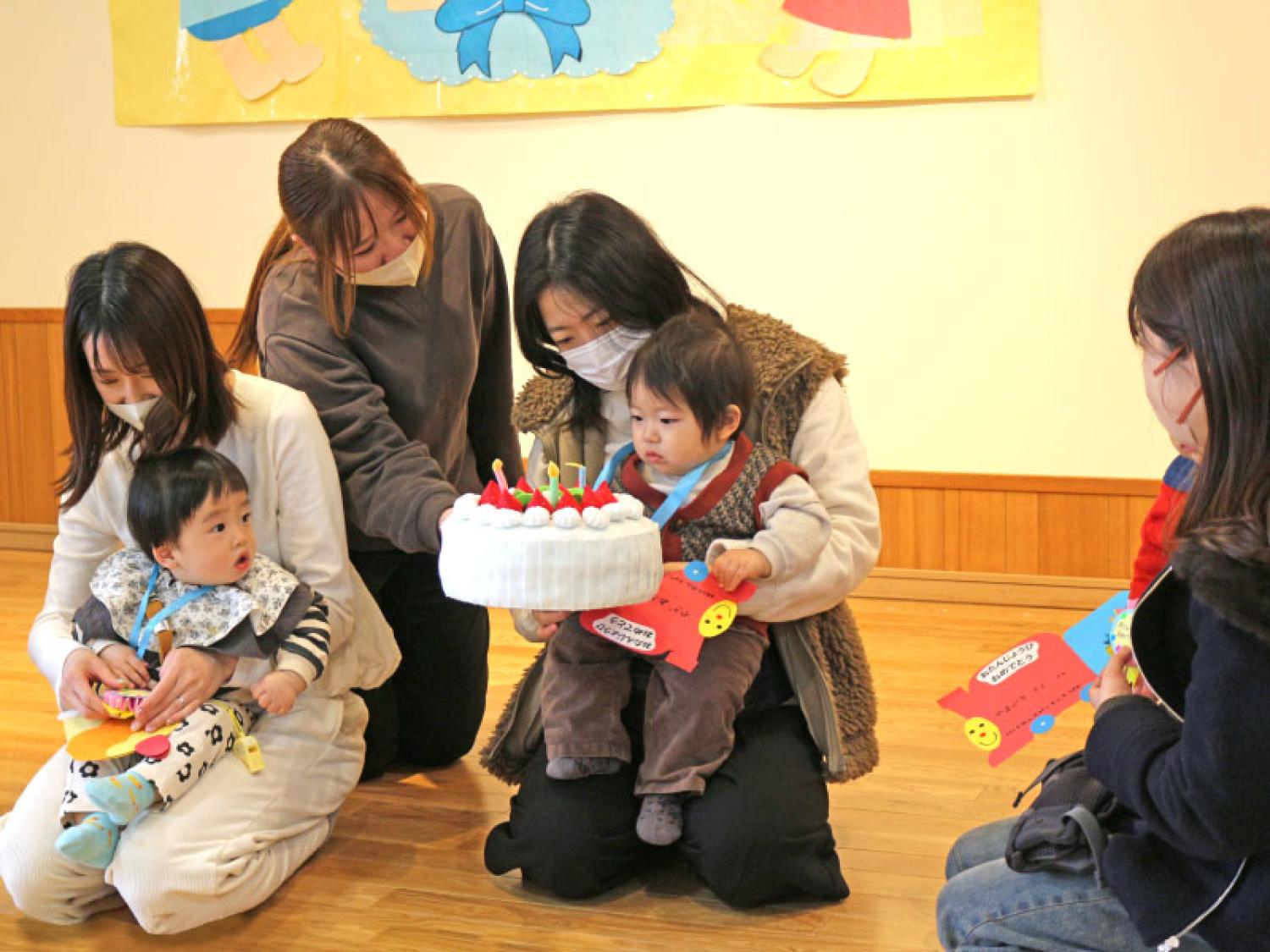 3月の誕生日会(乳児)に参加いただき、一緒にお祝いをしました。園見学や育児の悩み等を聞きながらゆっくり話す時間を持ちました。