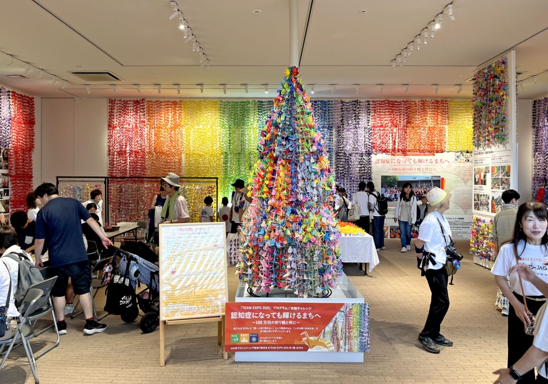 本年度は「認知症になっても輝けるまちへ~いのち輝く折り鶴100万羽プロジェクト」として、大阪・関西万博会場にて大規模な展示イベントが以下のとおり開催されました。