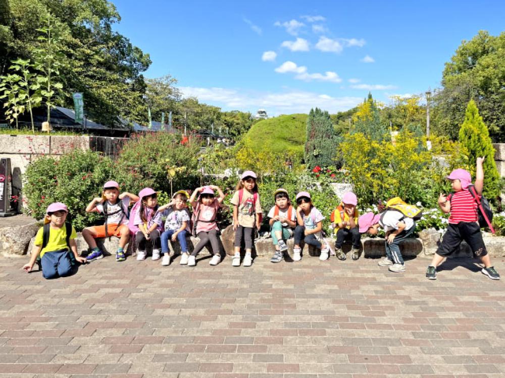 10月9日(木)、4歳児きりん組は、大阪城公園まで遠足に行きました。バスと地下鉄を乗り継いでいく遠足に、ワクワクの子どもたち。乗り物に乗った瞬間から喜びで、とってもいい笑顔でした。