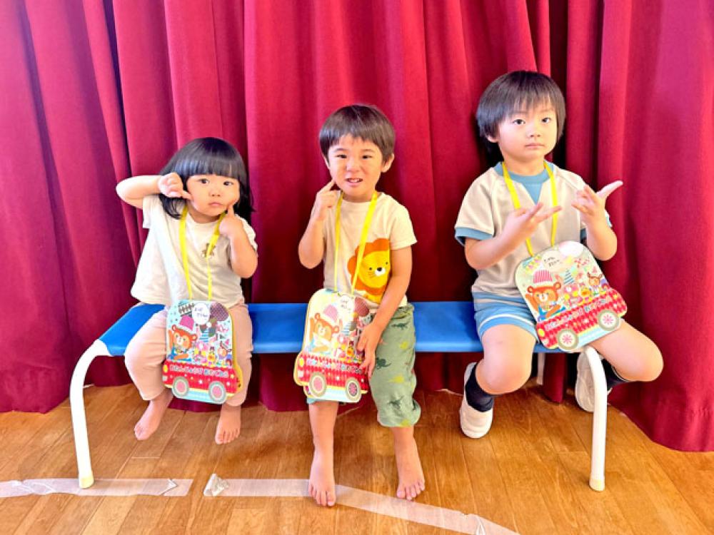 はじめに9月の誕生児のお祝いをすると、緊張した様子もありましたが、名前を呼ばれると大きな声で返事したり好きな食べ物を発表する姿が見られました。みんなから歌のプレゼントをもらったり、「おめでとう」とお祝いされると、「ありがとう」と嬉し そうにしていました。